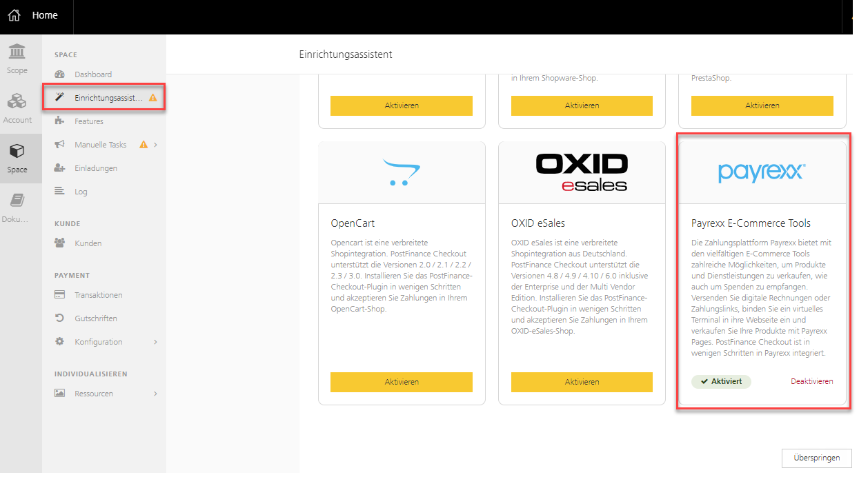 Einrichten in Payrexx