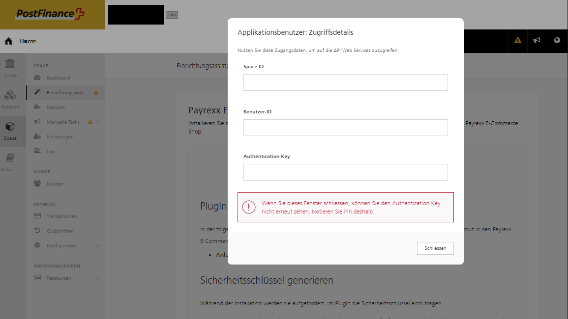 - Kopiere Sie die ID Ihres Spaces (Sie müssen diese später in Payrexx eintragen).