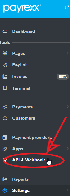Choose “API & Webhook” in your Payrexx account.