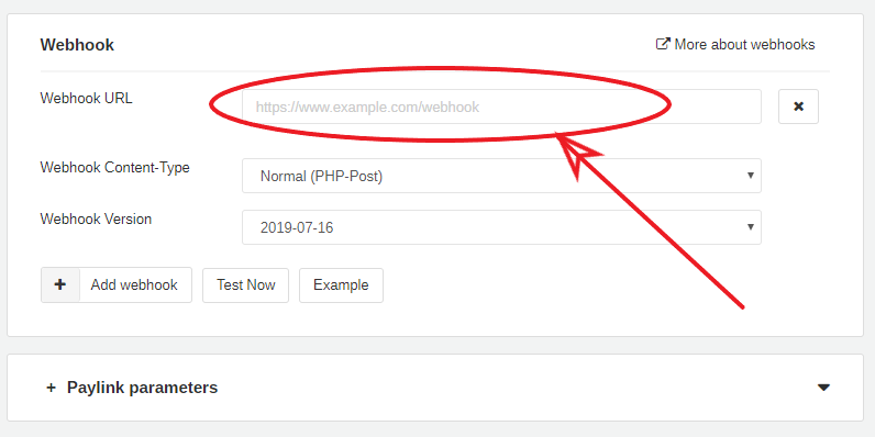 The field“Webhook URL” you have to fill out with your extended checkout-URL of your NopCommerce shop.